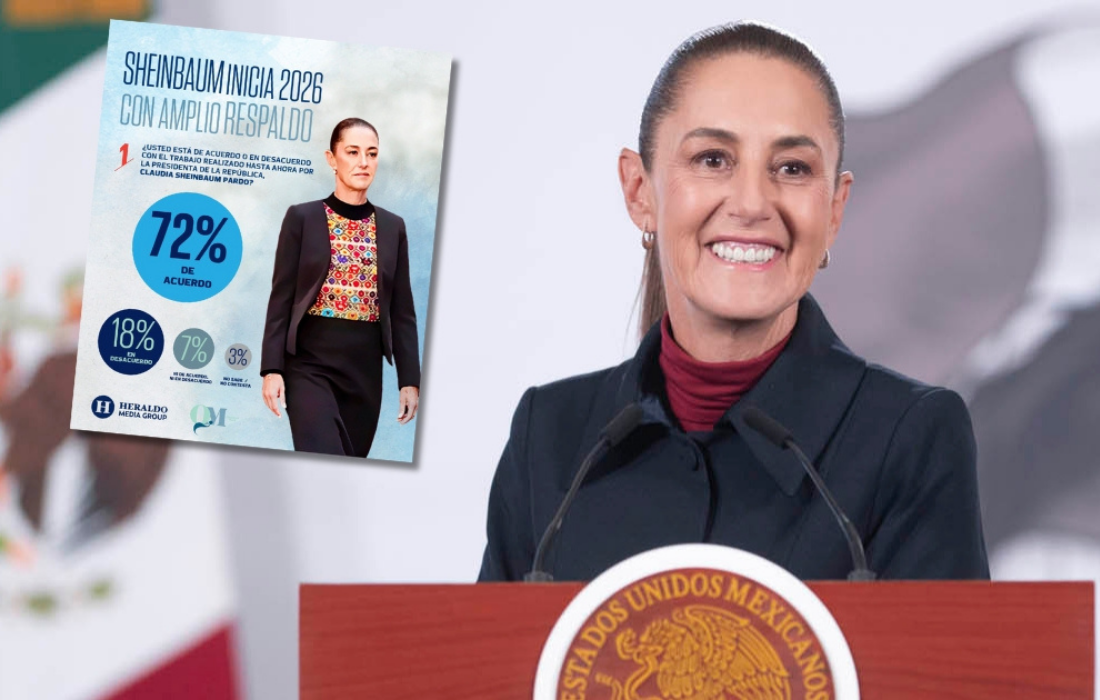La presidenta de México, Claudia Sheinbaum Pardo, comenzó el año 2026 con un nivel de aprobación del 72 % por parte de la ciudadanía, según los resultados de una encuesta realizada por QM Estudios de Opinión para Heraldo Media Group.